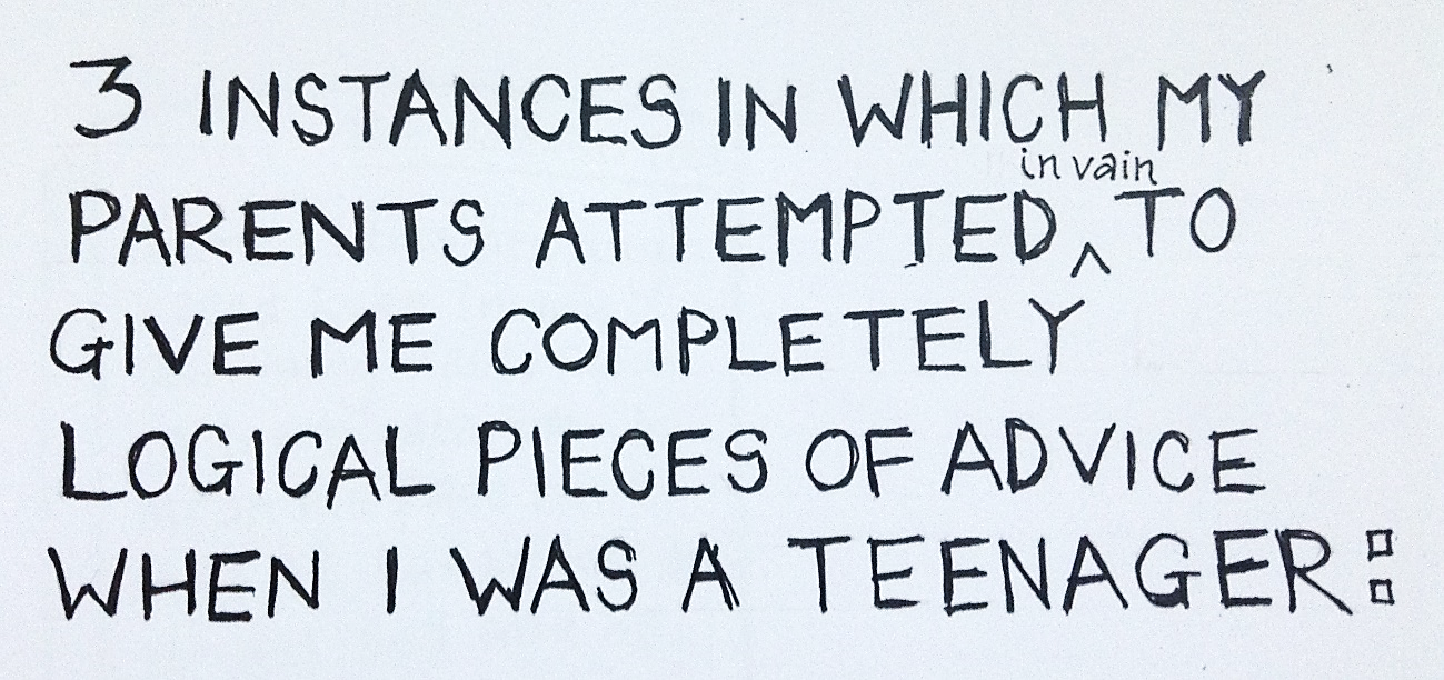 I was fully aware of the fact that my parents possessed over 30 years more life experience than me but this failed to prevent me from operating under the assumption that everything they suggested was automatically and intrinsically wrong and not applicable to me in any aspect.