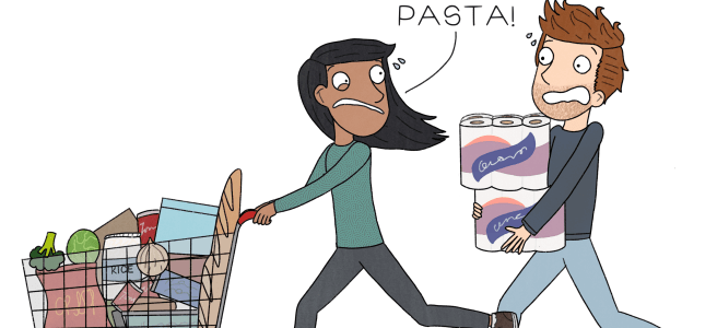 Things have gone completely mad. Everybody is freaking out and panic buying supplies. People are raiding the aisles like they’re on some sort of dystopian version of Supermarket Sweep.